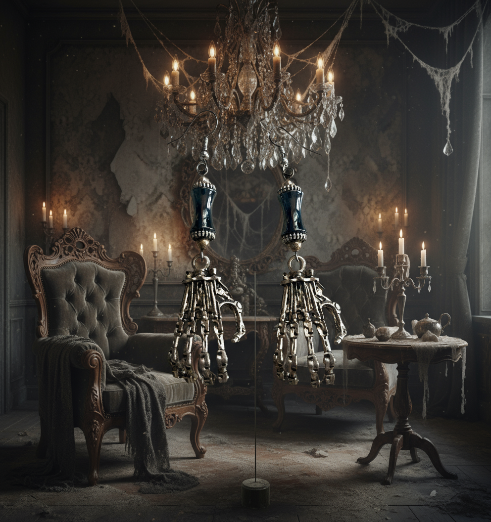 Halloween-Inspired Stainless Steel Skeleton/Magnetized Hematite Bead Earrings