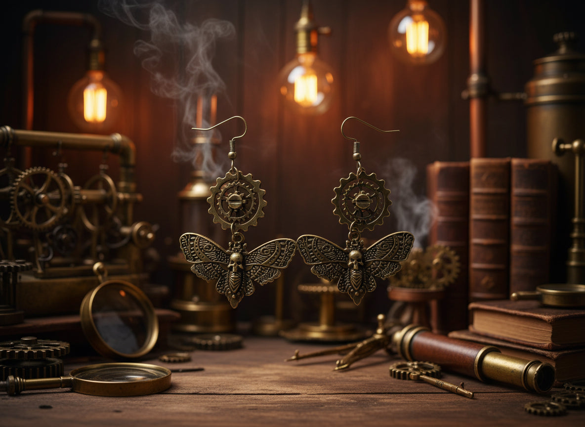 Steampunk-Inspired Bronze Death’s-Head Hawkmoth Charm Earrings
